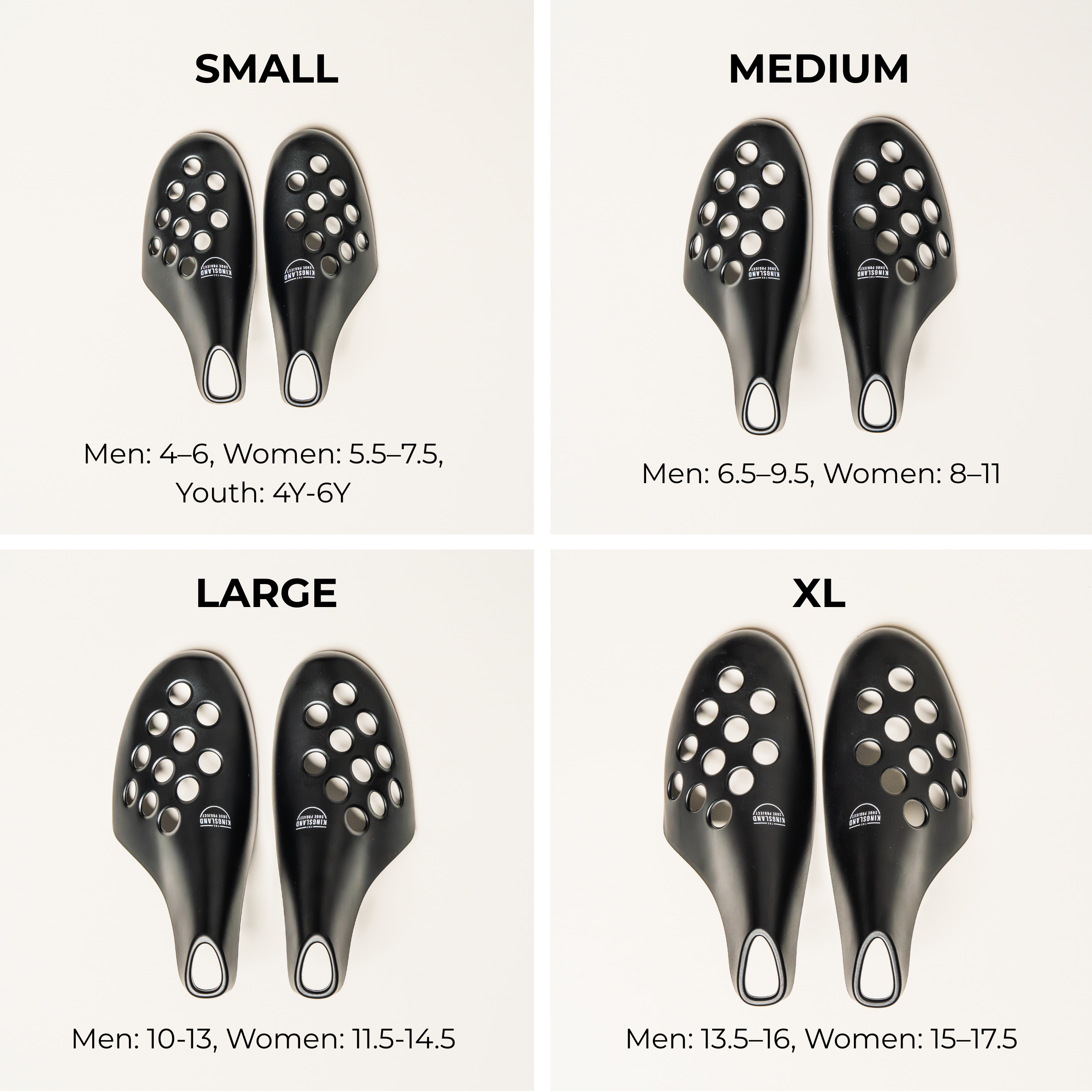 • Small: Men 4–6 | Women 5.5–7.5 | Youth 4Y-6Y