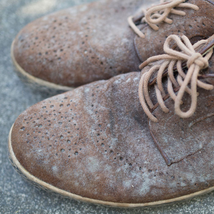 Check new shoes for any signs of mold or moisture as leather shoes are often manufactured in several locations and susceptible to the growth of mold. The long assembly process includes transportation and storage that can cause the beginning of mold growth in shoes.