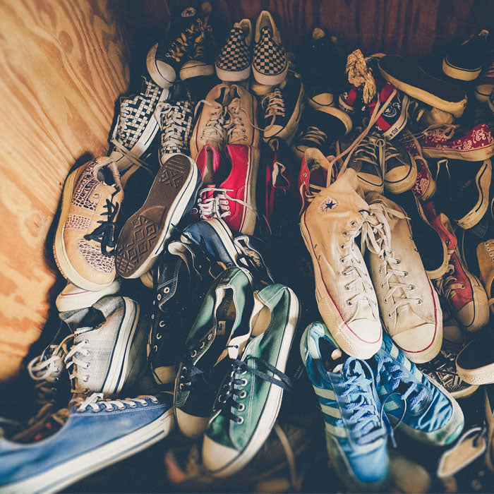 Do not place shoes in a plastic or enclosed bag that traps humidity and fosters mold growth. Let shoes dry in an aerated room or closet. Keep your shoe storage area clean and dry. Remove all dirt from your storage area, allowing fresh, dry air to circulate.