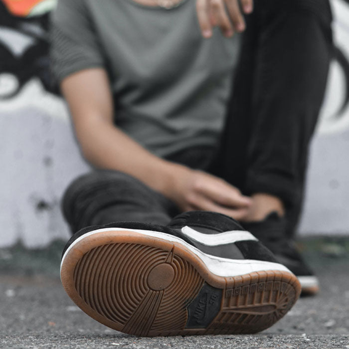 - After all large dirt clumps and dust are removed, dip a clean brush into a bowl of water and laundry detergent or dish soap solution and scrub away any dirt and stains on the midsole of the shoe