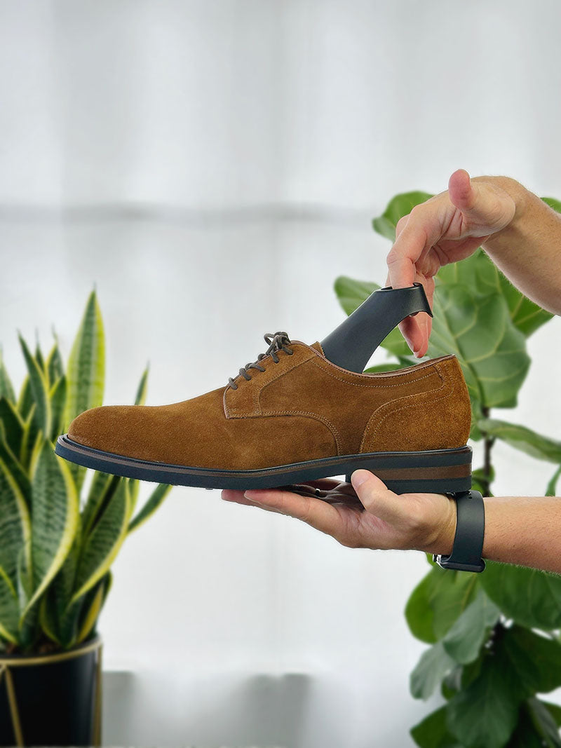 3. When using Fresh Flow Shoe Trees, leverage the handy push/pull tab to ensure the single mold structure is pushed completely into the shoe. Once you feel the shoe tree hit the front of the toe box or stop sliding, remove your hand from the tab and press the top and sides of the shoe’s toe box to make sure the shoe tree is flush against the front and sides of the shoe interior.