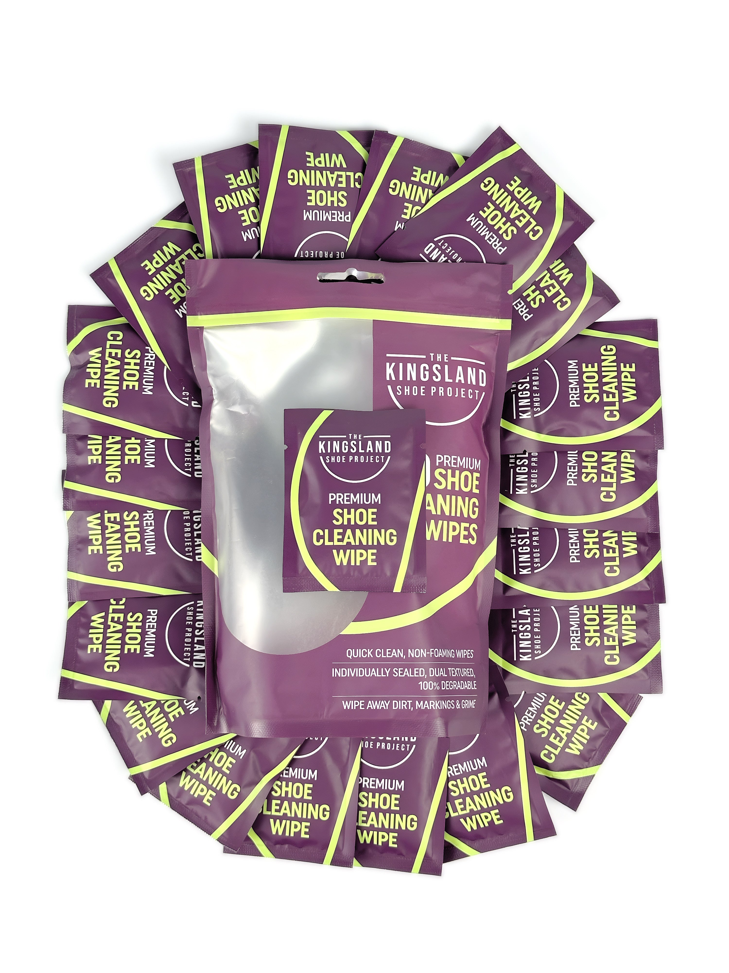 Individually wrapped, our cleaning wipes fit easily into your pocket, bag or glove compartment - perfect for on-the-go use. Whether you're heading to the office, the gym, or a night out, The Kingsland Shoe Project’s Premium Shoe Cleaning Wipes offer a convenient, travel-friendly way to keep all footwear looking it’s best.