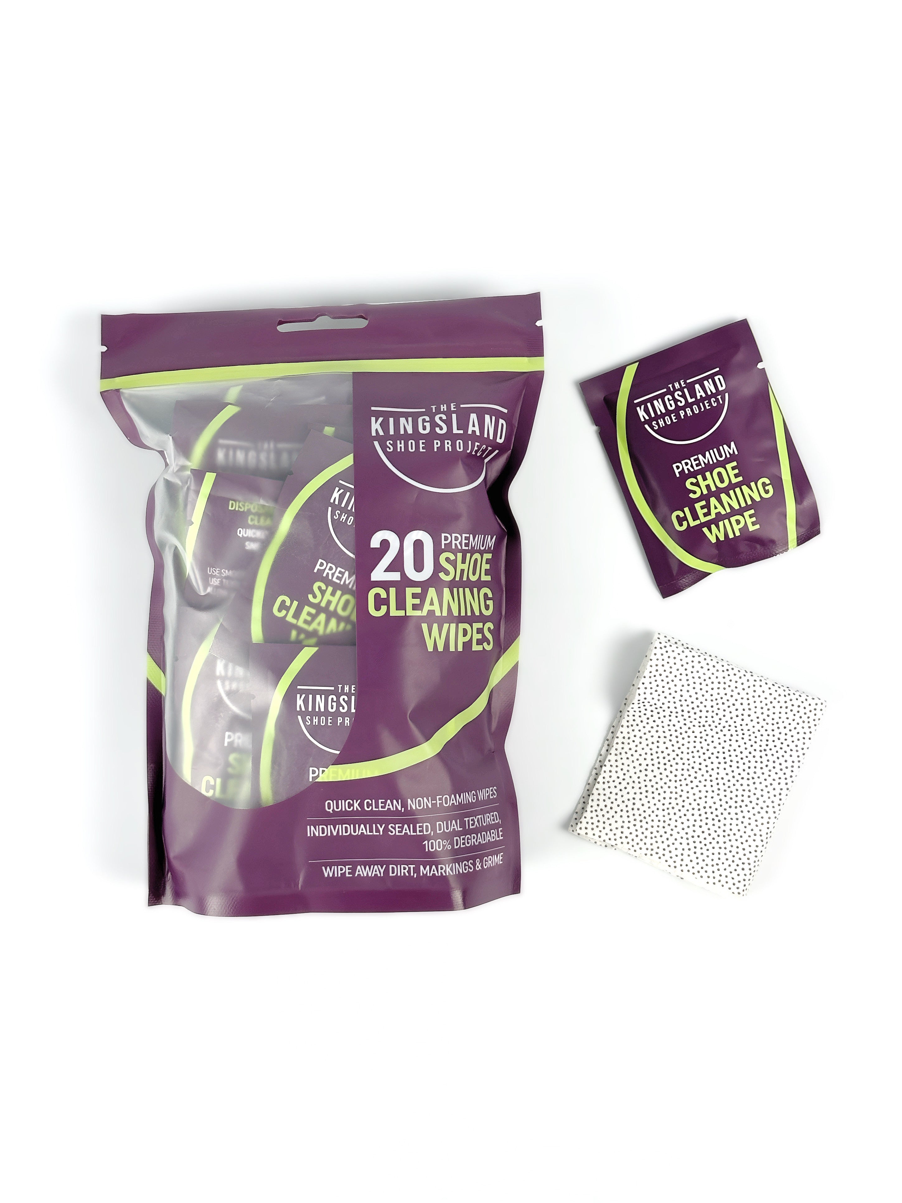 The Kingsland Shoe Project’s Premium Shoe Cleaning Wipes are a simple, effective solution for keeping shoes, sneakers & boots looking their best, anytime, anywhere.