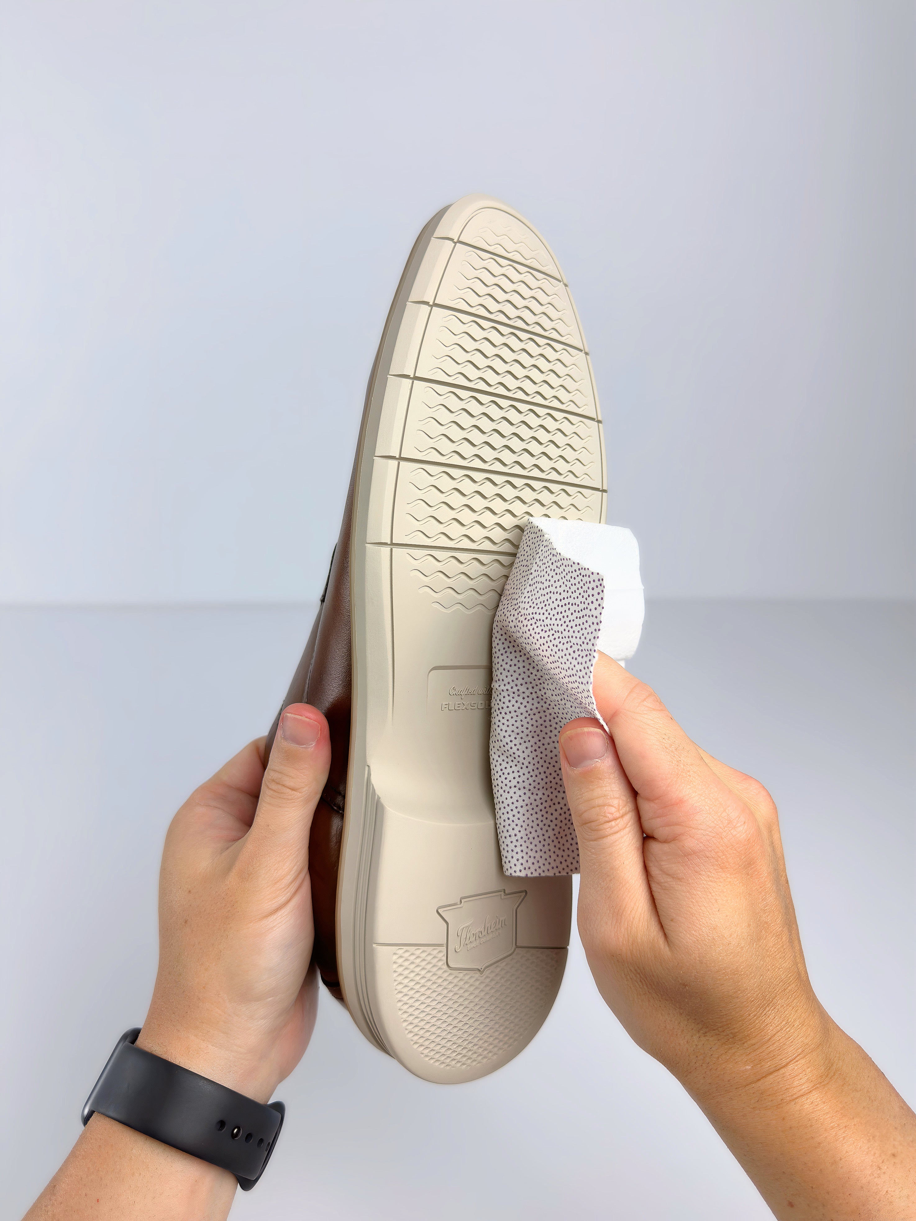 Our dual-sided, disposable & biodegradable shoe wipes quickly clean soles, midsoles, and uppers. One side features a textured surface to tackle tough dirt and stains, while the smooth side gently cleans and polishes.